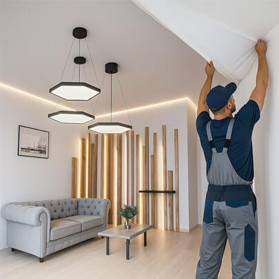 Натяжна стеля — це не просто оздоблення, а частина простору, де ви живете, працюєте, відпочиваєте. І ми це чудово розуміємо. Саме тому вже понад 7 років наша команда займається монтажем стель із головною метою — зробити роботу так, щоб клієнт був задоволений на 100%. Не на словах, а на ділі.